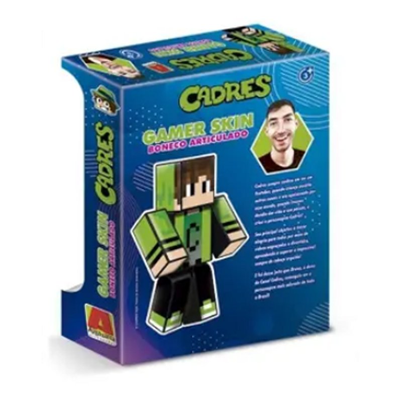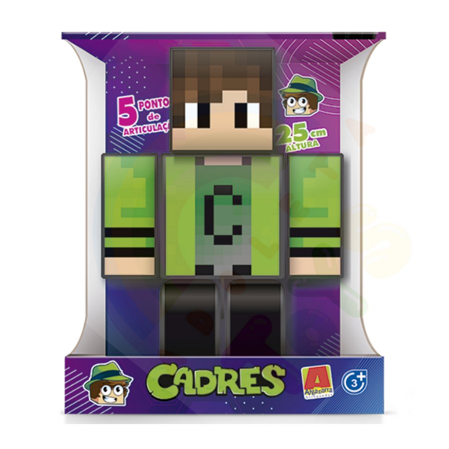 Entrem no mundo de Minecraft como nunca antes! Está na hora de criar, explorar e viver grandes aventuras com o boneco do Cadres, de 25 centímetros. As articulações móveis permitem que a personagem faça muitos movimentos. Cadres é um Youtuber muito conhecido no Minecraft e com mais de 20 milhões de inscritos no seu canal. Com o Boneco do Cadres articulado de 25cm as crianças irão viver as suas próprias aventuras e soltar a imaginação com divertidas brincadeiras!